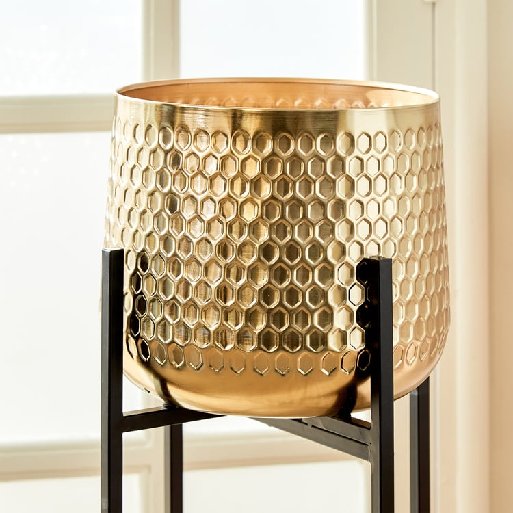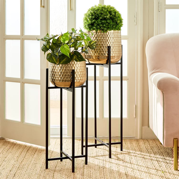 Add a touch of elegance and sophistication to your home decor with this Metal Golden Plant Stand. Crafted with high-quality metal and finished with a luxurious gold coating, this plant stand will enhance the aesthetic of any room, whether it's placed in the living room, bedroom, or balcony. Features: Elegant Design: The sleek golden finish gives the stand a modern and chic appearance, perfect for any contemporary home or office space. Durability: Made from sturdy metal, ensuring long-lasting strength and stability for your plants. Versatile Use: Ideal for holding a variety of plants such as potted indoor plants, flowers, or decorative items. Compact & Stylish: Its minimalist design makes it easy to place in any corner, adding a stylish flair without taking up much space. Easy to Assemble: Simple and quick to assemble, with no tools required for setup.